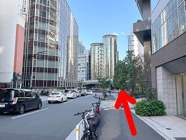渋谷ソラスタコンファレンスの入口に到着。タリーズコーヒーの手前を右折し、このまま矢印の方向に進んでビルに入りましょう。