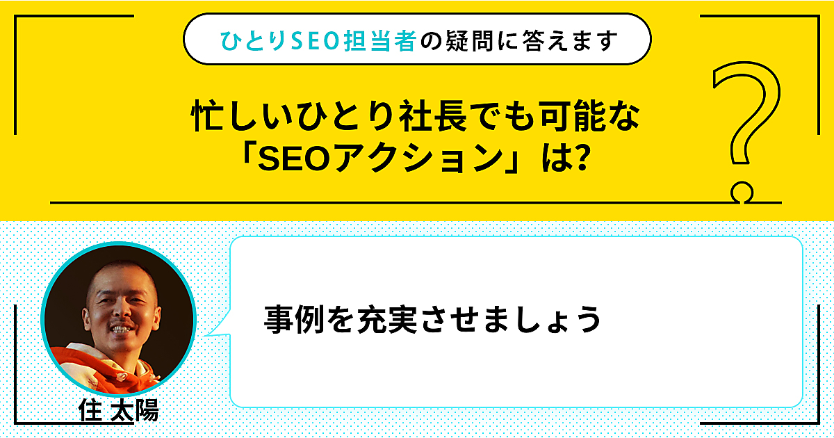 ひとりで頑張るSEO担当者さんの悩みに答える本連載。今回の質問は「忙しいひとり社長でも可能な”SEOアクション”は?」です。この回答は「事例を充実させましょう」です。