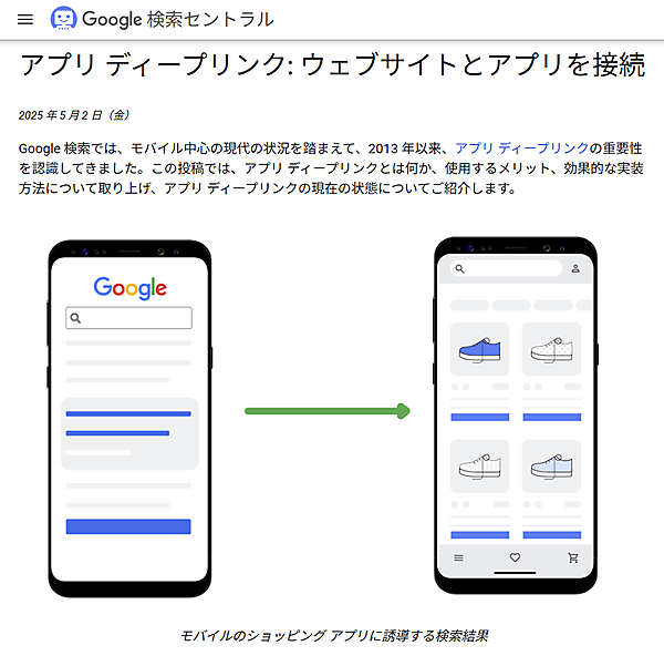 「アプリ ディープリンク」とは何かと、その利点、そして効果的な実装方法について、グーグル検索セントラルブログが解説した。