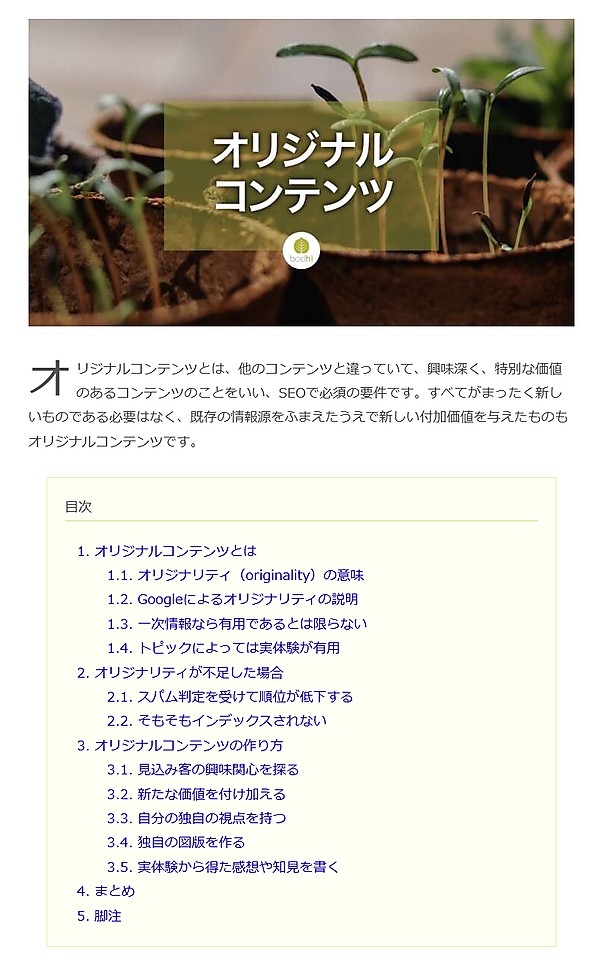 強調表示してある部分が重要だ。“コピペ”でさえなければオリジナルと呼べるかもしれない。だが、他とは際立っていて、そこでしか得られない独自の情報を含み、かつ有用であることが真のオリジナルコンテンツには求められる。