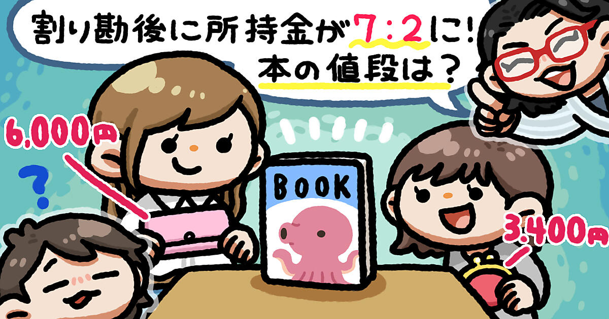 Q1.姉が6000円、妹が3400円を持っていて、本を購入するために割り勘して同じ金額を出したら残金が7:2になった。本の値段はいくら?