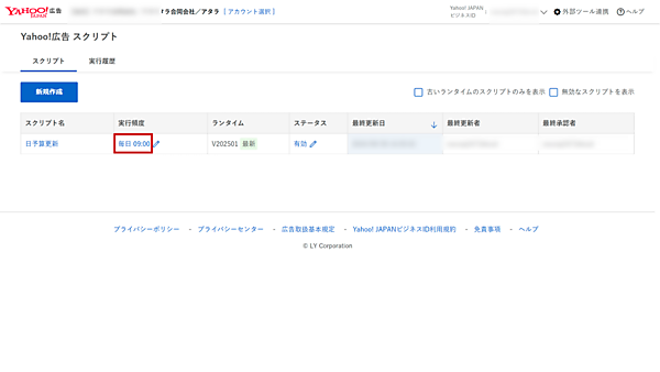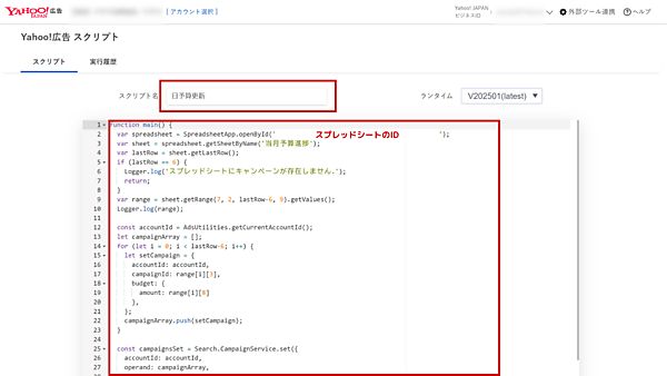 ※今回はYahoo!広告の検索広告で機能するスクリプトを実行します。