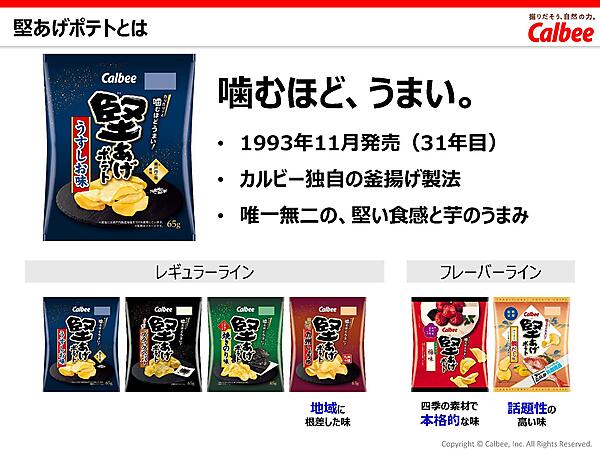 商品ラインアップは「うすしお味」「ブラックペッパー」「焼きのり味」などのレギュラーラインに加え、「梅味」などの季節限定品や、「九州しょうゆ」などの地域限定品も展開する。その一部をファンコミュニティの協力を得ながら開発しているという。