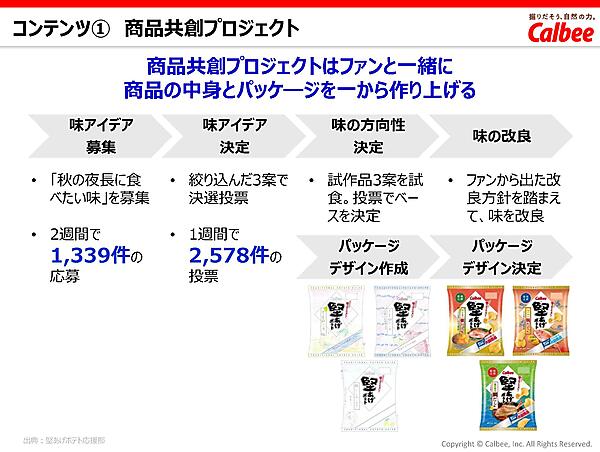 「息の長いブランドとしていくためには、一定間口を広げ、ブランドが成長したタイミングで、今度は奥行きを広げていく必要がある。SKU(Stock Keeping Unit)が増えると単品の商品力が課題になる」と穂積氏はその経緯を語る。すでに「じゃがりこ」でファンコミュニティの成功事例があったことも追い風となった。
