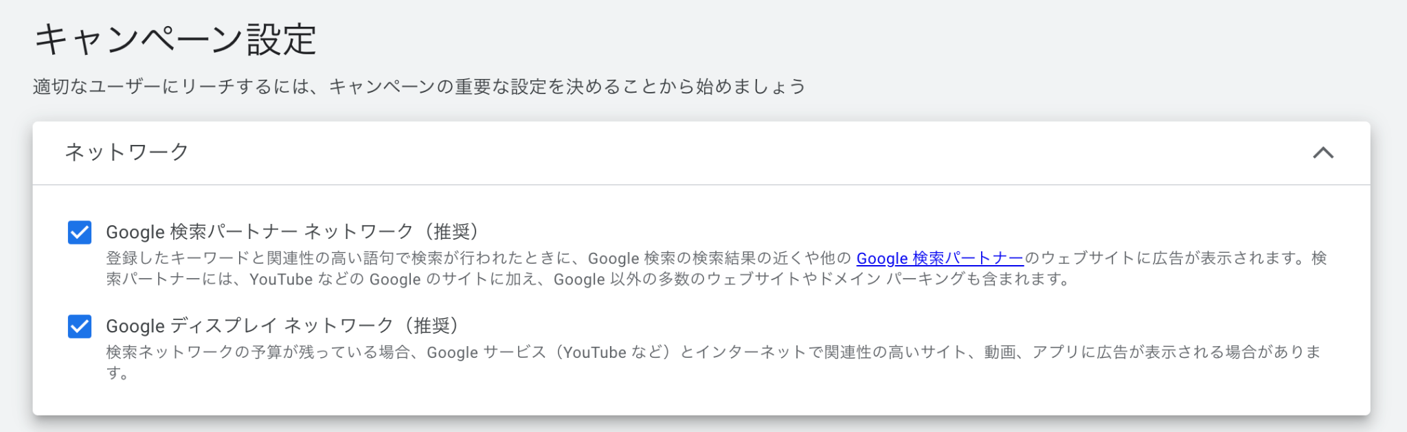 杓谷: この仕様の名残は、現在のGoogle 広告の管理画面にも残っています。検索広告のキャンペーンを作成する際に「Google ディスプレイネットワーク」(「AdSense」の広告枠に表示される広告)のチェックボックスがデフォルトで「ON」になっているのがそれです。