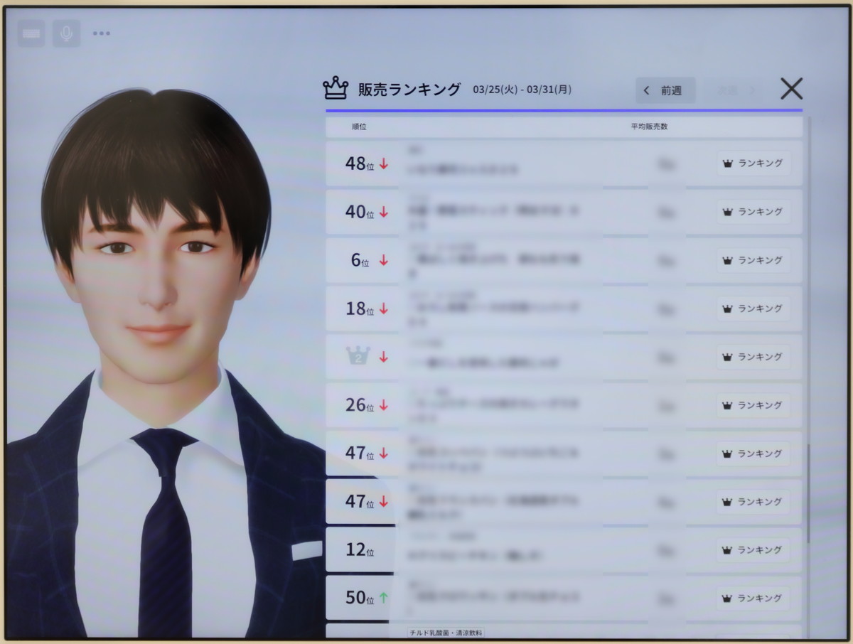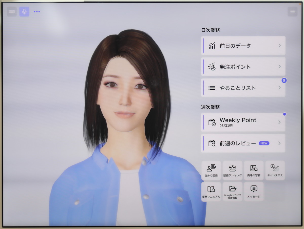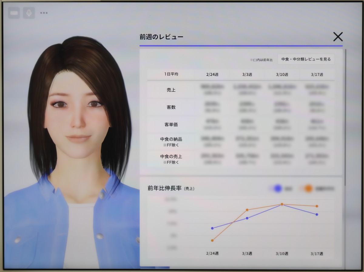 2023年には、店長やスーパーバイザー(以下、SV)の業務効率化を目的とした「人型AIアシスタント」(名称:レイチェル/アキラ、以下レイチェルで統一)を本格導入。2025年5月時点で、関東、東北、北海道の約7,000店舗に導入している。