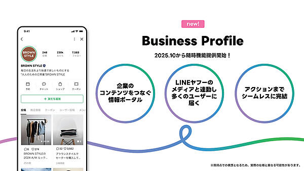 LINE公式アカウントのトップ画面が進化し、Business Profileとして生まれ変わる。LINE公式アカウントは、メッセージアプリという印象があるが、その概念を変えながらビジネスポータルの役割を担える新機能が追加される。この機能は、2025年10月以降に随時提供される予定だ。
