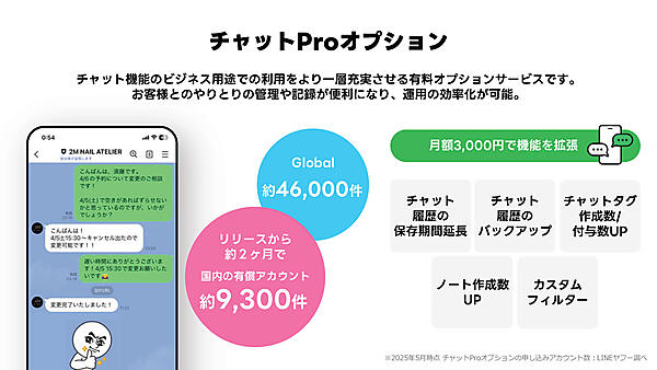 チャットProオプションは、リリースから約2か月で日本国内では9,300件、グローバルでは46,000件がすでに利用されているという。