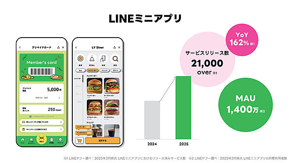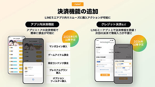 また、LINEミニアプリ内で決済できる機能が2025年8月以降にリリースされる予定であり、さらにクレジット決済も2026年以降に機能搭載される予定だ。