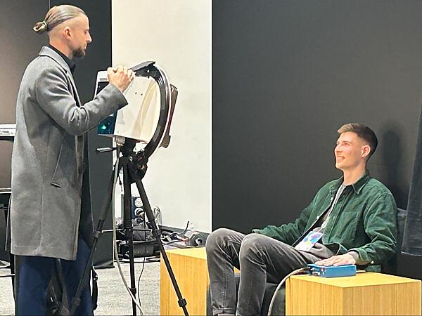 GitHubなど企業出展や、Figmaのメンバーへ質問できる「エキスパート・バー」などが賑わっていた。中でも長蛇の列だったのが、Google Designのブースだ。専用カメラで撮影した来場者のオーラを視覚化し、心理状態や個性を色で分析する「オーラ診断フォトサービス」で、なんと最大40分待ち!