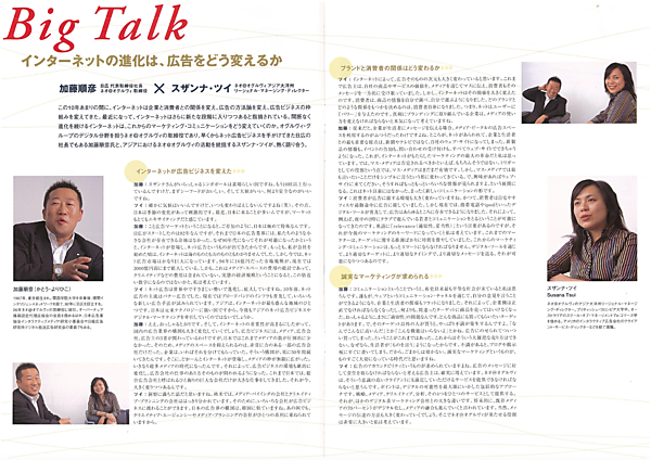 下の画像は、2006年の秋に発行されたオグルヴィの会社案内で、ネオ・アット・オグルヴィのアジア太平洋地域の責任者と対談している僕の記事です。