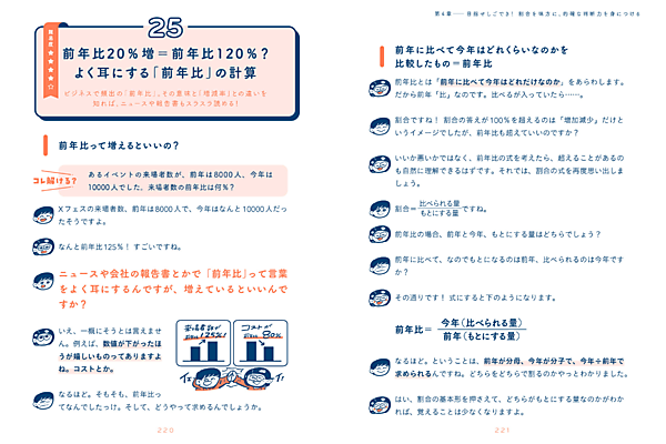 なお本書は、計算の基礎として四則演算から始まり、分数、因数分解など、算数のおさらいができる箇所が100ページほどある。ビジネスや日常生活で直面する具体的な例題が、読み物形式で書かれているので、軽い気持ちで読み進めてほしい。