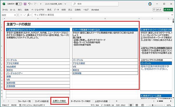 - 企画:コンテンツ設計書(前半)~SEO検討シート~