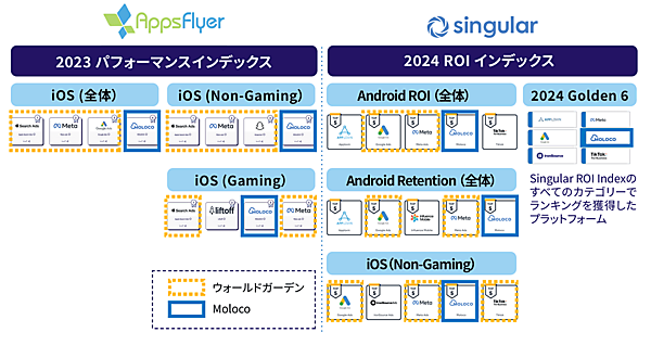 Molocoの「Moloco Ads」は、効果的な機械学習によってターゲットユーザーへの効率的なリーチがかなうアプリ広告プラットフォームだ。GoogleやMeta(Facebook、Instagram)などの「ウォールドガーデン」の外にあるオープンインターネット領域にアプローチでき、特にiOS向けについては、グローバルでトップ3のパフォーマンスを誇る(AppsFlyer調べ)。