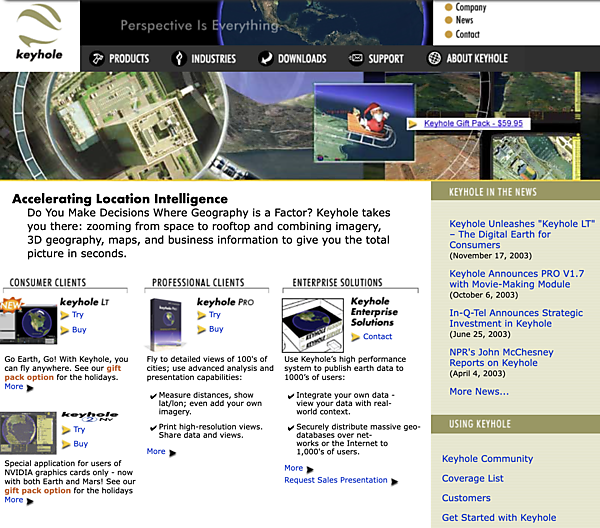 - 2004年10月に「Keyhole」(現在の「Google Earth」「Google Map」)