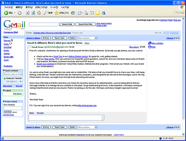 そんな僕の考え方を変えるきっかけとなったのが、2004年4月1日にサービスを開始した「Gmail」です。(「AdSense」が日本でサービスを開始したのもこの年:第27話参照)。2004年のサービス開始当時は招待制のβ版でスタート。日本では2006年8月から、全世界では2007年2月から一般公開され、登録すれば誰でも使えるようになりました。