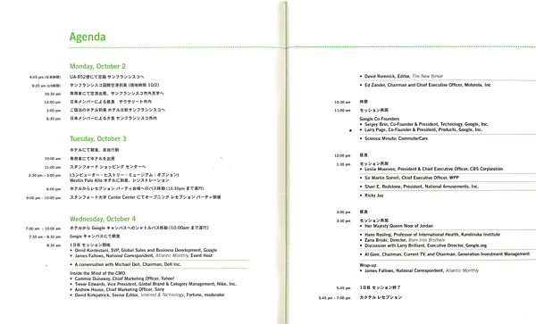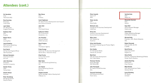 エリック・シュミットに紹介されて、金髪で七三分けの若きチャド・ハーリーと、台湾系のスティーブ・チェンがステージに上った時の様子をよく覚えています。ただ、この時のエリックの紹介では、「彼らはいま西海岸のガレージで動画のストリーミング配信サービスをやってるんだ」みたいな感じで、買収の話をおくびにも出さないんです。実際、彼らはパンフレットの出席者名簿にも載っていませんでした。