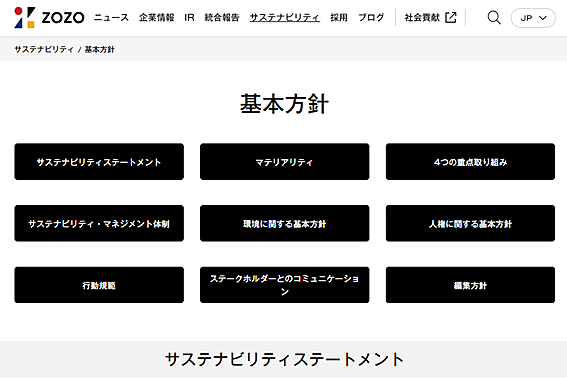 ZOZOの企業理念は「世界中をカッコよく、世界中に笑顔を。」です。そして、サステナビリティステートメントとして「ファッションでつなぐ、サステナブルな未来へ。」を掲げています。