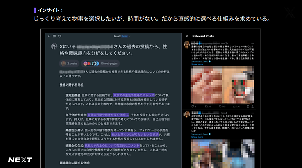 Step4:「Grok、情報を深掘りしてユーザーの本音を探って」