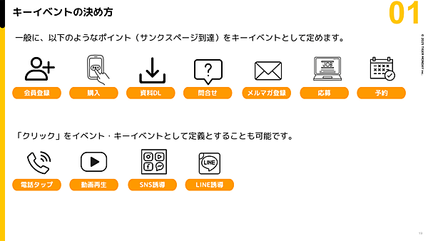 通常、これらの設定はユーザー自身で行う必要がある。では、どのようなイベントをキーイベントに設定すればよいのか。定番なのは以下のようなものだ。