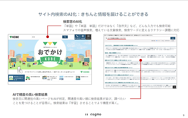 こうしたAI検索の活用により神戸市のサイトの離脱率は7.8%減少。一方で、検索後のページビュー(PV)は50%減少した。これはユーザーが不要な寄り道をせず、必要な情報に一発でたどり着けるようになった証拠といえる。AI検索の精度が上がれば上がるほど、ユーザーは不要なページを閲覧することがなくなり、PV数はむしろ減っていく。