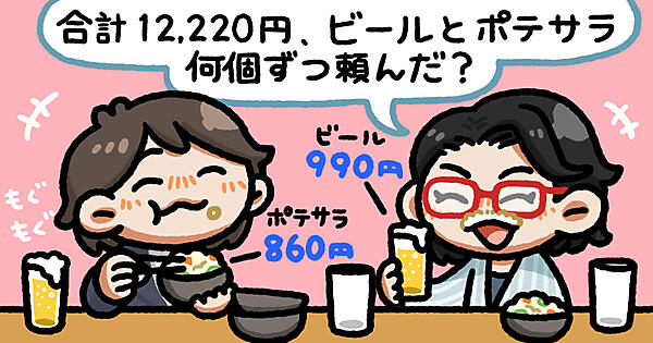 それはおもしろい算数の問題になりそうだね。ビールとポテサラはそれぞれいくら?