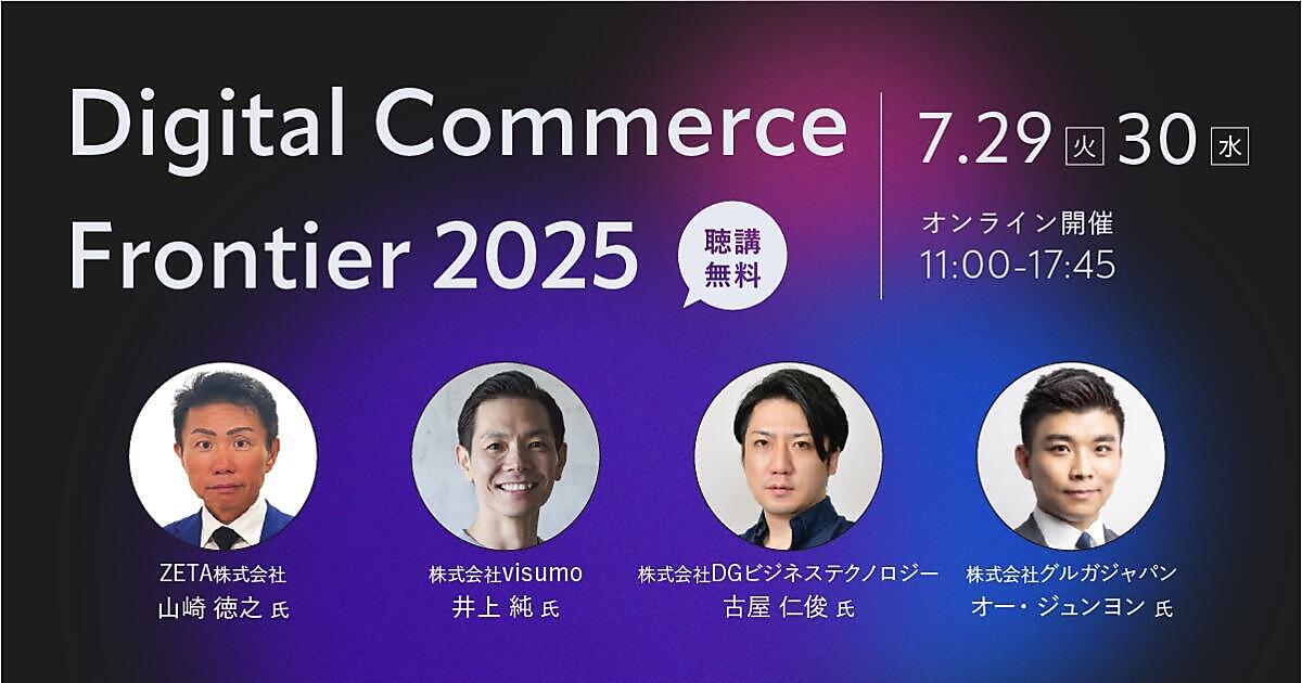 7月29日(火)+30日(水)に、デジタルコマースに関わる人必見の大型オンラインイベント「Digital Commerce Frontier 2025」を開催。ワコール、スマートニュース、ZOZO、中川政七商店、アスクル、パルコ、アシックスなど著名企業の成功事例や実践的な知見を学べるさまざまなセミナーを用意しています。