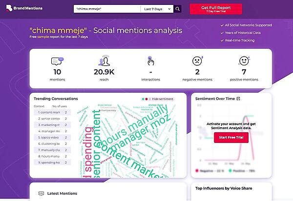 私はBrandMentions.comで記事を読んでいるときにこれを経験し、「ソーシャルメンションを追跡」というリンクをクリックしてみた。