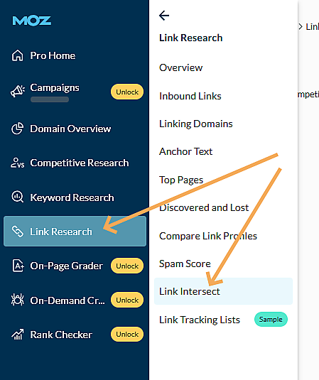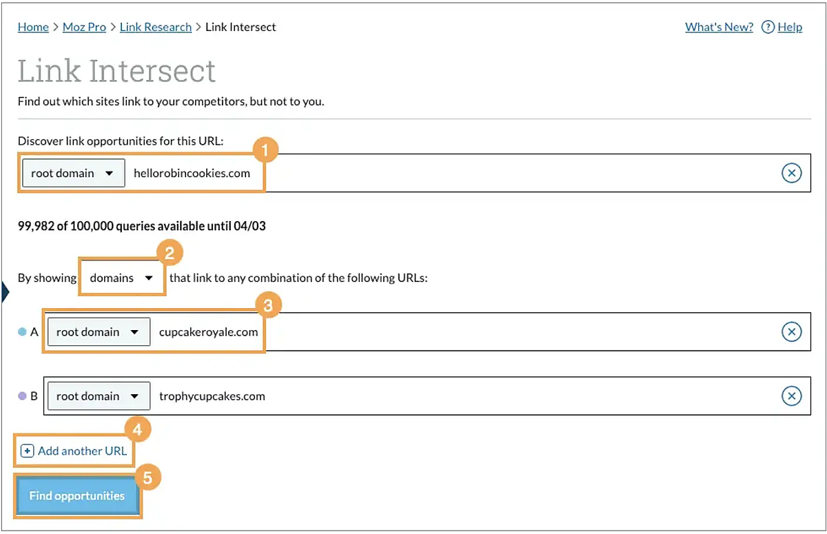 Link Explorerでサイトのリンク機会を見つけるには、Link Intersectのセクション内で以下の手順を参考にするといい: