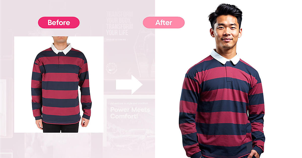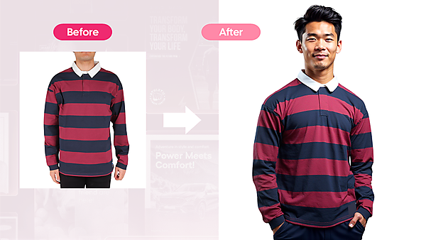 (右)After:AIモデルの画像。理想とするモデルで、ブランドイメージとマッチする。