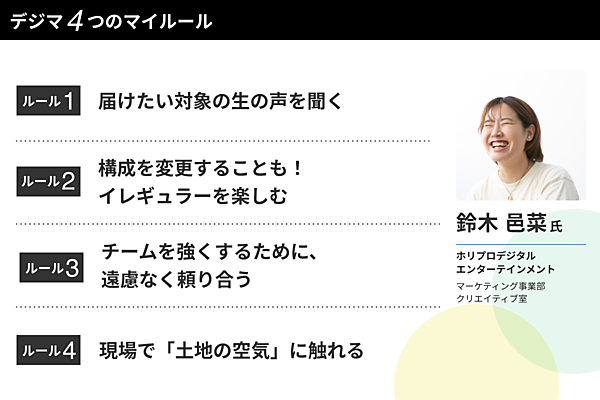 この快挙の立役者が、2025年3月まで「なんかいいよね、葛飾」の運用支援を担当した株式会社ホリプロデジタルエンターテインメントの鈴木邑菜(ゆうな)氏だ。なぜ彼女は、多くの企業や自治体がSNSに苦戦する中で若者の心を掴むコンテンツを生み出せるのか。その核心にある4つのルールを紐解く。