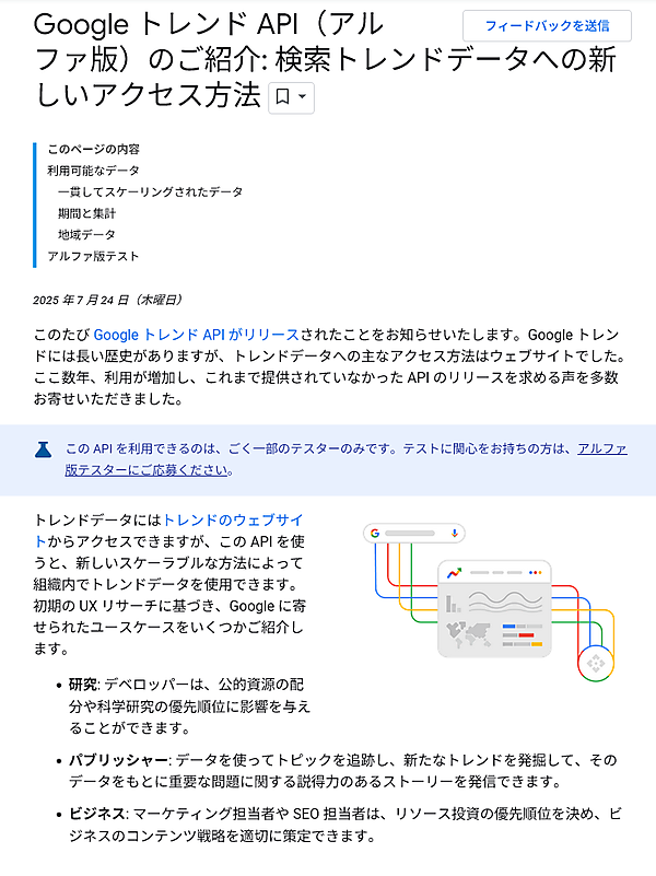 GoogleトレンドAPIをグーグルが公開した。APIを介してGoogleトレンドのデータを入手し、自前のシステムに組み込んだり独自ツールを開発したりできる。