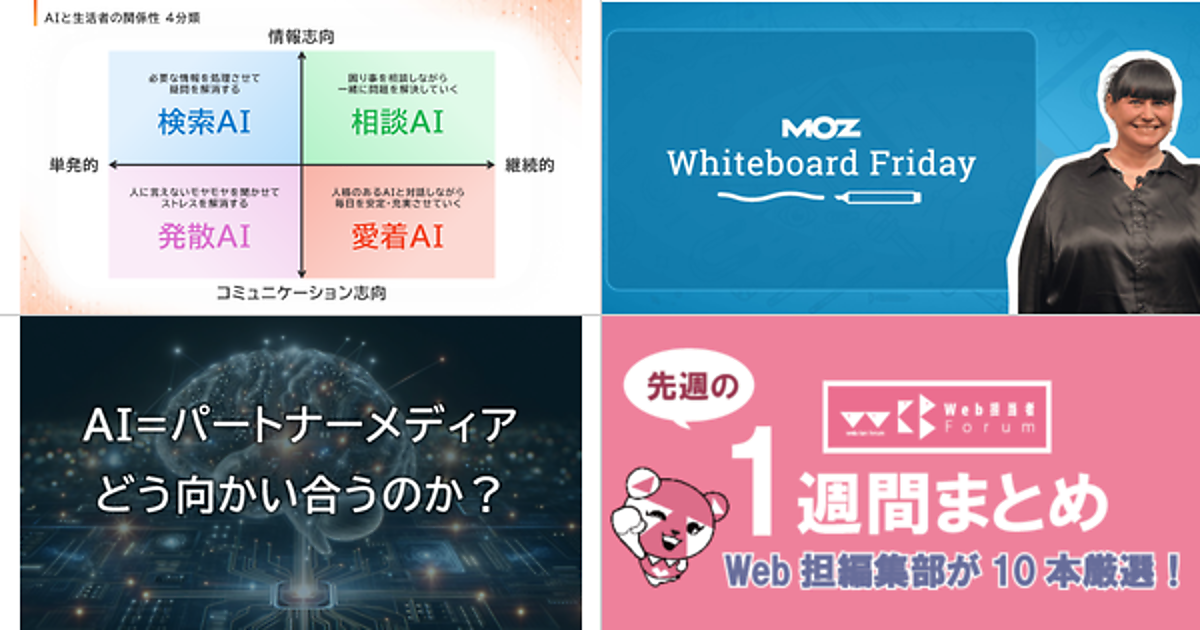 今回の要チェック記事↓ニュース | ↓セミナー | AIは「恋人」にもなりうる? “検索機能”を超えた世界の使われ方とは?