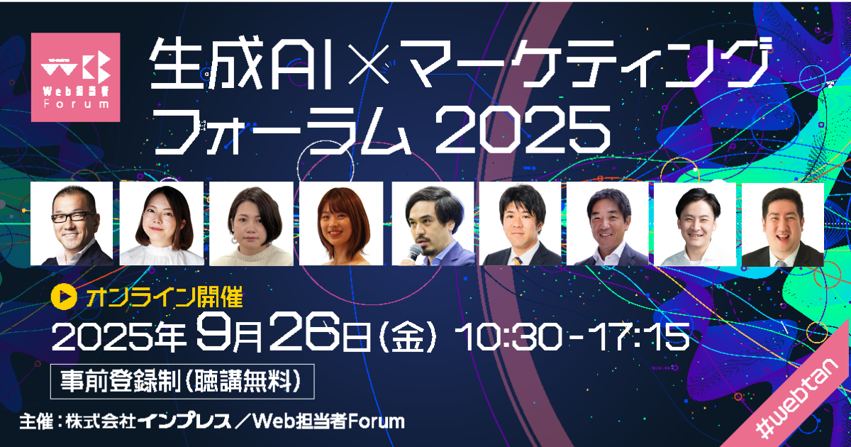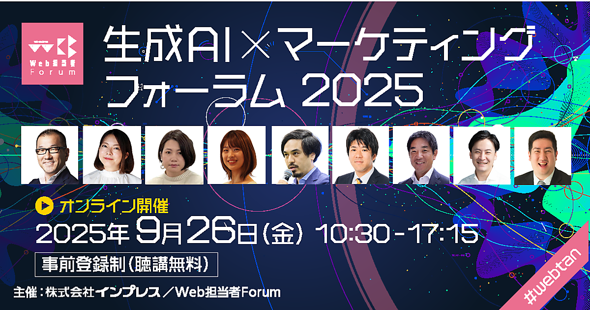Xinobi AI、Wix.com Japan、ラクーンコマース、Faber Companyなどが登壇する「生成AI × マーケティング フォーラム 2025」を9月26日(金)にオンラインで開催します。