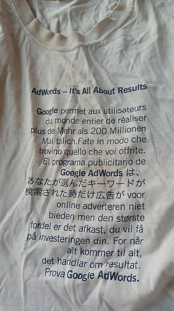 佐藤:下の画像はシェリルが主催したAdWords1周年のインターナショナルイベントの際に彼女が出席者に配ったTシャツです。シェリルはAdWordsの母とでも言うべき存在でした。