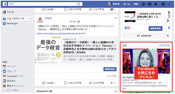 黒田:また、こうした状況に追い打ちをかけるようにスマートフォンが登場します。Facebook Adsが公開された同年には米国でiPhoneとAndroidの発売がすでに始まっていました。「Facebook Ads」には、デスクトップPCに「Facebook右側広告枠」 (「Facebook Right Column」)と呼ばれる広告枠があるのですが、スマートフォンの小さいディスプレイでは広告を表示させる場所がありません。