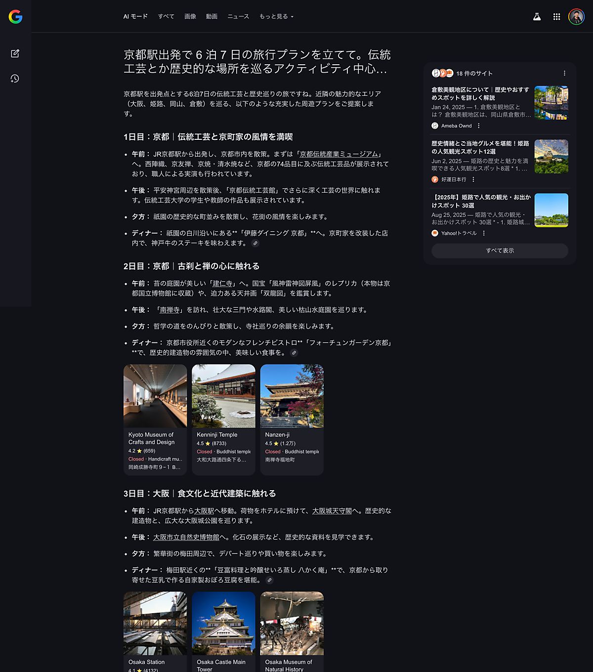 たとえば、次のようなクエリをAIモードにしてみた: