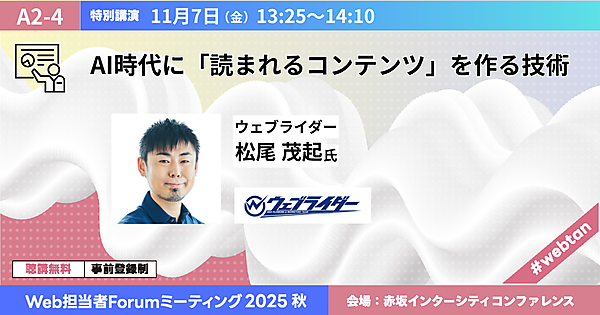 Web担当者Forumが主催する無料セミナーイベントをご存知でしょうか? 今回は、11月6日(木)・7日(金)に開催されるセミナー「Web担当者Forum ミーティング2025 秋」についてご紹介します。