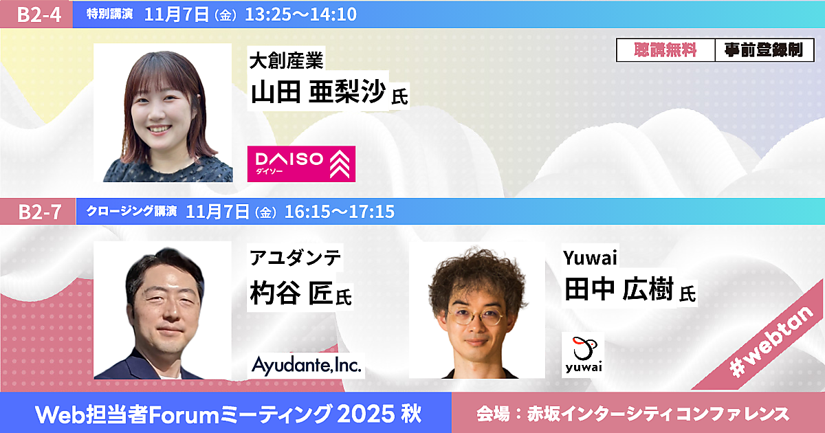 サンリオ、キリン、大創産業、武蔵大学などが登壇する「Web担当者Forum ミーティング 2025 秋」を11月6日(木)、11月7日(金)に開催します。
