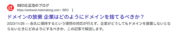 以上3点を押さえていれば、title要素かh1要素のどちらか狙った方をタイトルリンクとして表示させやすくなります。