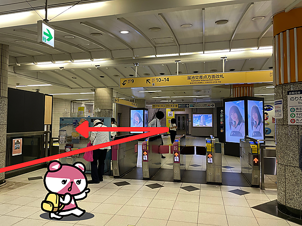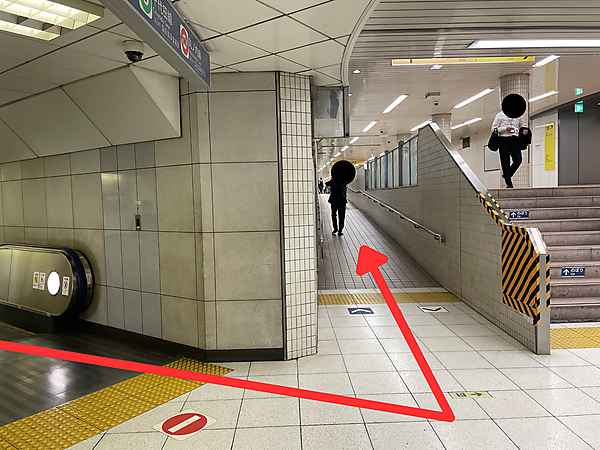 14番出口の案内が見えたら、左に曲がります。