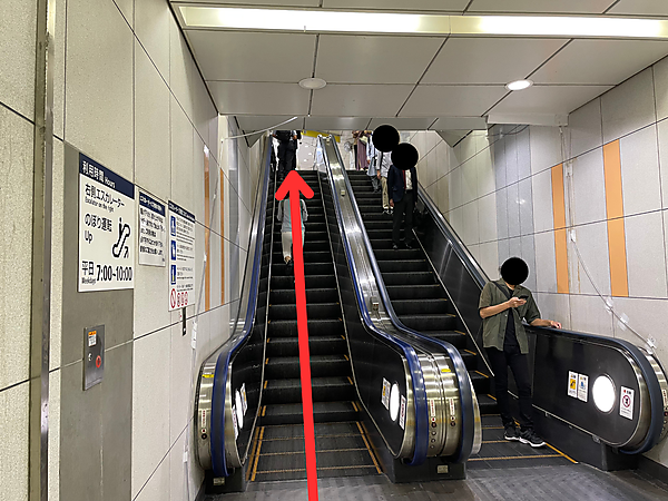 改札を出たら、斜め左方向にあるエスカレーターに乗ります。