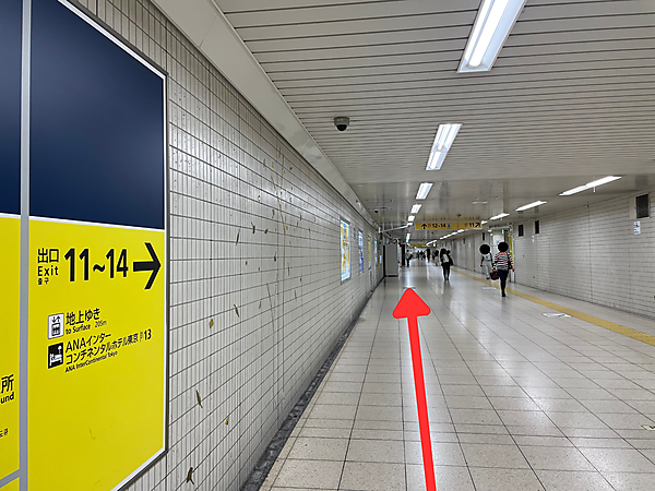 14番出口まで直進です。ここは数百メートルあり、結構歩きます。