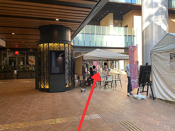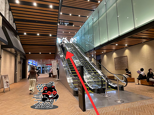 エスカレーターを登ったら、斜め右手方向に進みます。ここは一瞬迷いがちなスポットなので、お間違えないように!