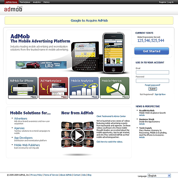 前年の2009年11月には、Googleがモバイルアプリ向けのアドネットワーク「AdMob」の買収を発表し、2010年5月に米連邦取引委員会(FTC)の承認を経て買収が完了した頃でした。スマートフォン経由の広告については、検索連動型広告の成長が見込まれていたため、AdMobのアプリ広告の売上拡大が大きなミッションとなりました。