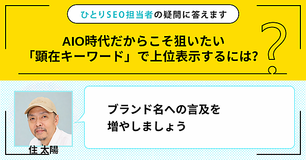 ひとりで頑張るSEO担当者さんの悩みに答える本連載。今回の質問は「AIO時代だからこそ狙いたい“顕在キーワード”で上位表示するには?」です。