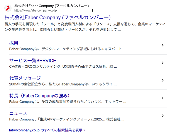 そのユーザの行動を改善するために重要なのが、指名検索の自然検索結果の最上位に表示されることがあるこのリンクです。