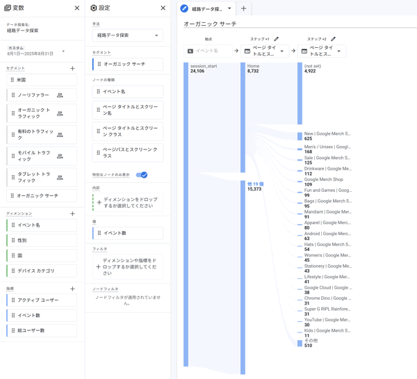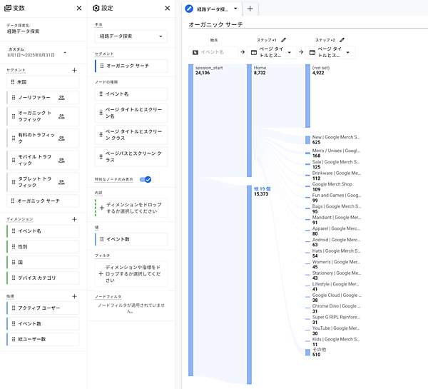 サイトの回遊データは、GA4の探索レポートの経路データ探索などを使って確認できます。