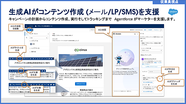 今後の展開として、メール配信後の顧客対応に「Agentforce for Service」を連携、結果分析にはセールスフォースの分析プラットフォーム「Tableau Next 」を活用することで、さらなる効率化と顧客体験の向上につなげたいねらいだ。