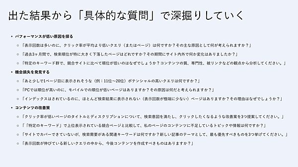 【Gemini】Googleサーチコンソールのデータから改善策を探す
